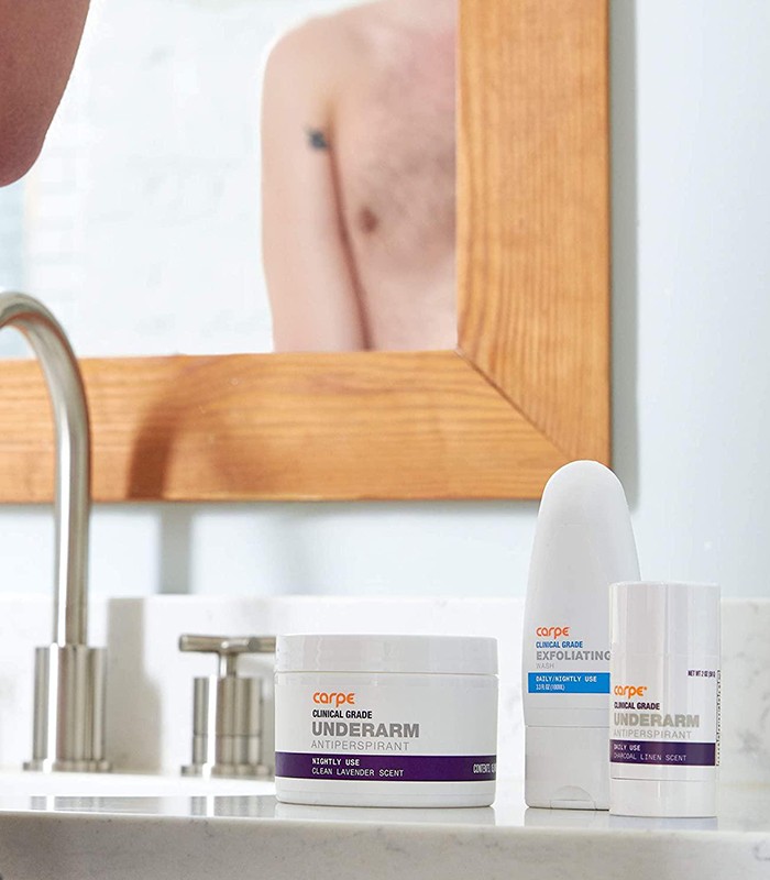 El sistema de productos para el control del sudor CARPE se ha diseñado para ayudar a combatir el sudor desde el origen, sin importar cuánto, cómo o dónde sudes. Los antitranspirantes y los productos absorbentes de sudor de Carpe son recomendados con frecuencia por dermatólogos y han sido utilizados por miles de personas con hiperhidrosis.